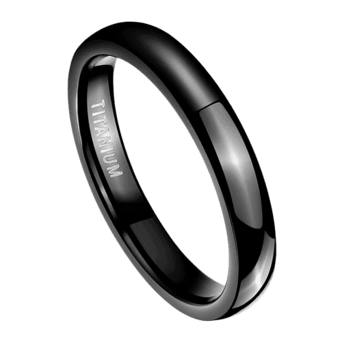 Un elegante anello da uomo in titanio, il massimo in fatto di stile. Una sottile fascia nera lucida e leggermente bombata.